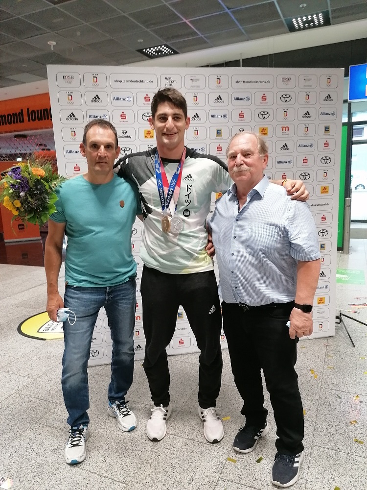 und hessischen Judokas am Frankfurter Flughafen empfangen.
